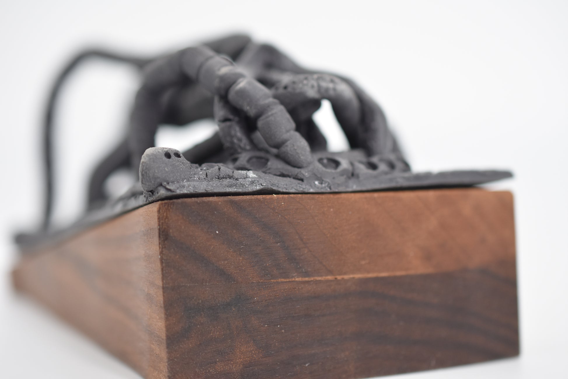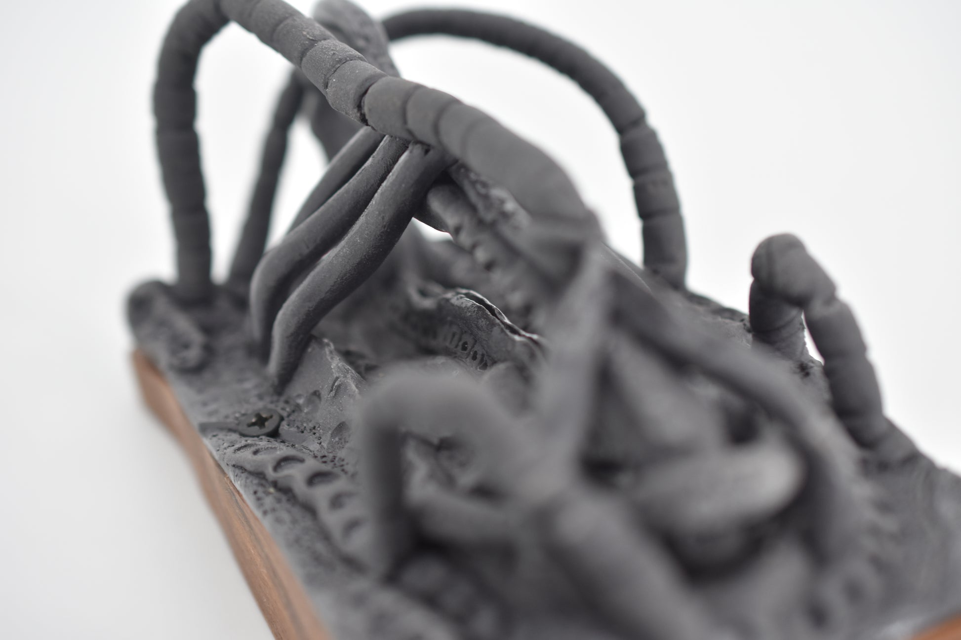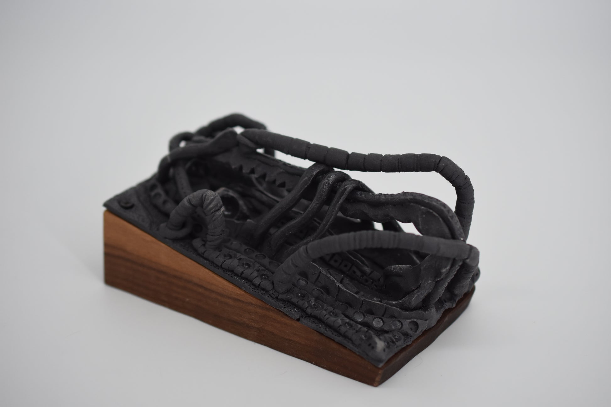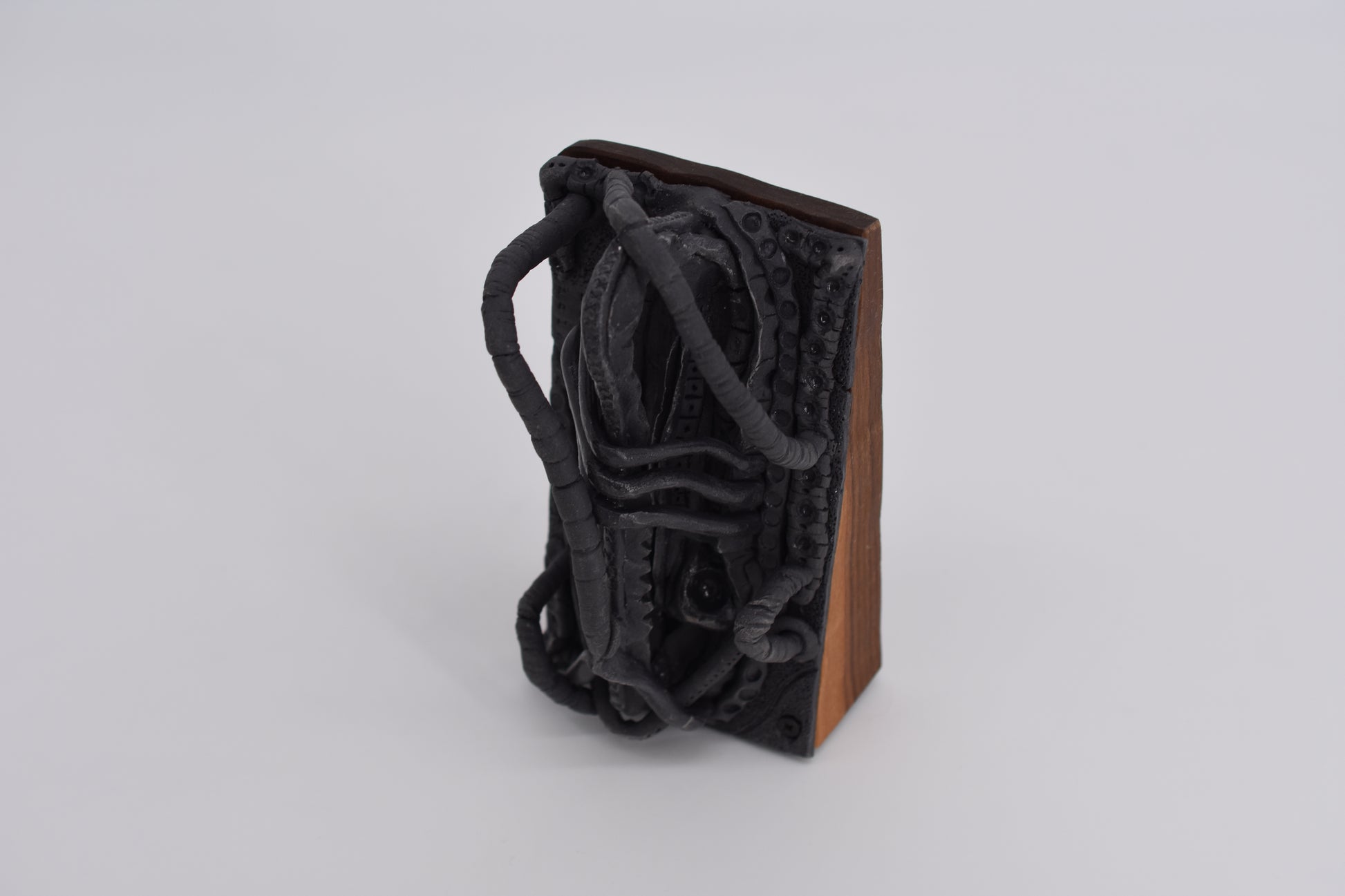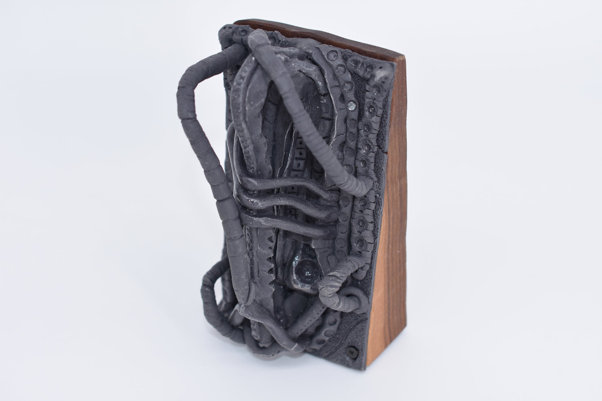 Passage I is a sculptural fragment of ornamented libido — a compressed corridor of impulse, desire, and obstruction. Tubes, ridges, and embedded seams press into one another, forming a vertical axis that is both erotic and congested. The piece is explicit, though not in gesture — its exposure lies in its structure, in the way it makes visible the channels through which energy moves and gets knotted.As part of the Passages series, this work sits between vessel and interface: not devotional, but insistent. It invites the viewer to witness — not what passes through, but the shape of passage itself.